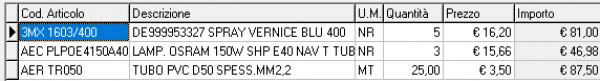 Alcune griglie permettono anche l’inserimento di righe vuote (ad esempio nei Documenti possono servire per separare nel corpo due gruppi di Articoli).