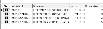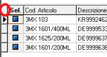 Tramite il primo campo della griglia, rappresentato da un quadratino sarà possibile selezionare o deselezionare un elemento. L'elemento sarà selezionato quando il quadratino corrispondente alla riga sarà di colore blu (vedi esempio).