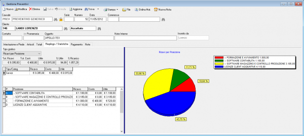 nella pagina Riepilogo / Statistiche è possibile consultare il valore totale del preventivo sia di costo che di ricavo.