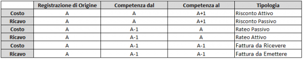 Quindi possiamo osservare che: Per i Costi/Ricavi la cui competenza ricade in al meno due periodi economici: