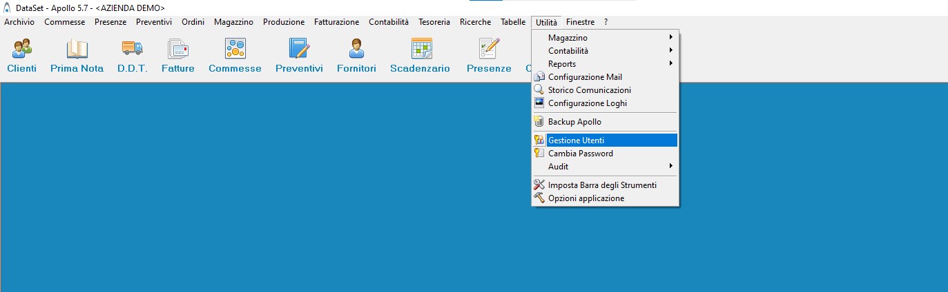 - Per creare un Utente nella barra in alto selezionare Utilità → Gestione Utenti