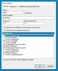 Per i Clienti con il modulo SECURITY: l'Amministratore potrà decidere quali Utenti possono accedere a determinate aree di Apollo (es. Commerciale, Fatturazione, Logistica, ecc).